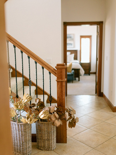 When designing this home, we wanted to incorporate natural elements that tied in the home’s exterior and landscaping around the property. While the color tones lean neutral, we selected stone and wood elements to warm up the space. Because our client wanted to bring in new decor for each season, the earthy hues serve as a perfect background for any piece.